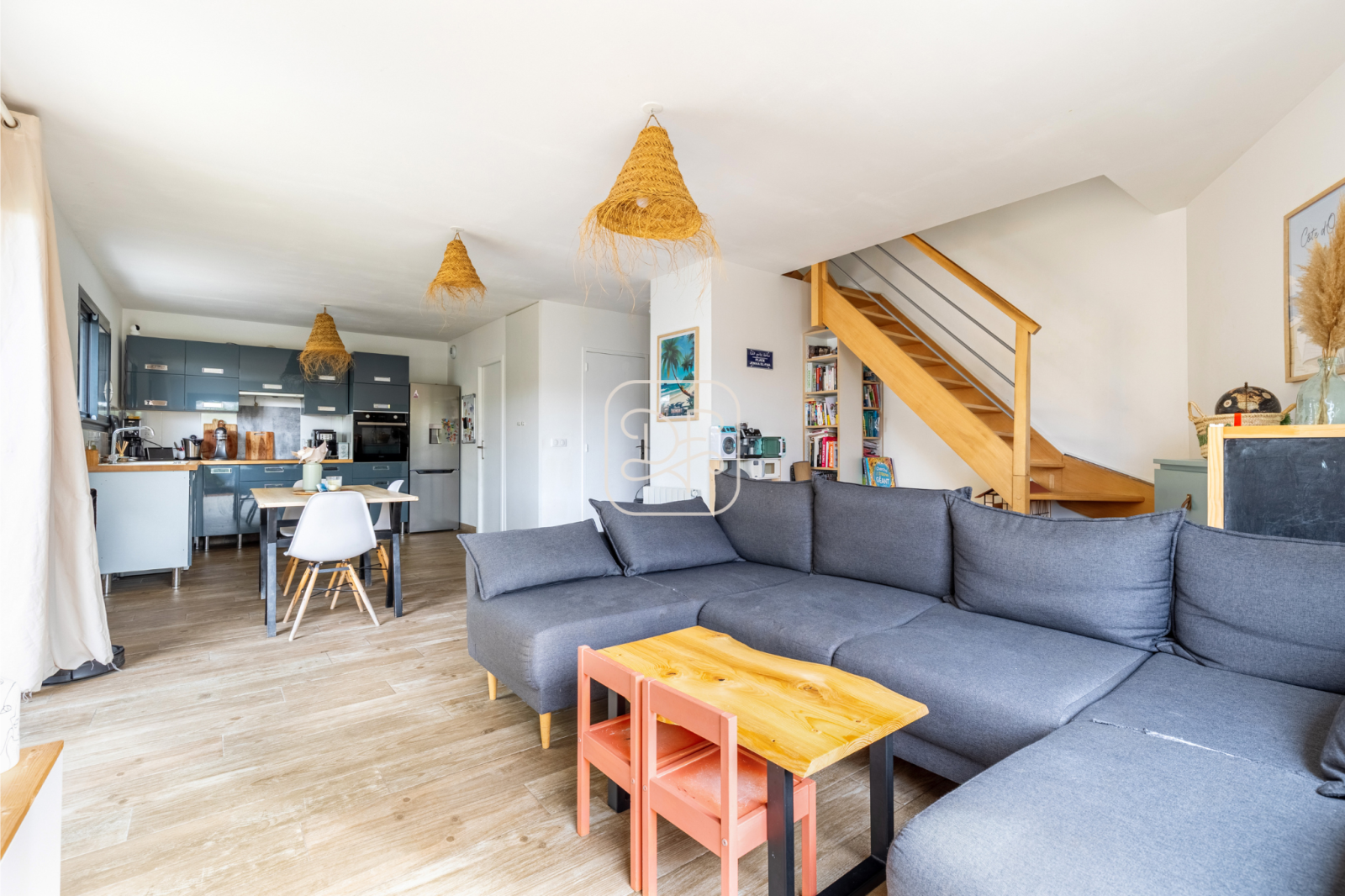 Découvrez cette charmante maison à étage de 74 m² construite en 2018, idéale pour une vie de famille confortable, sur une parcelle de 235 m². Lumineuse et bien agencée, elle se compose au Rez-de-chaussée entrée avec placards, pièce de vie lumineuse exposée sud-ouest donnant sur le jardin sans vis-à-vis, cuisine américaine, buanderie/cellier et toilettes indépendantes.