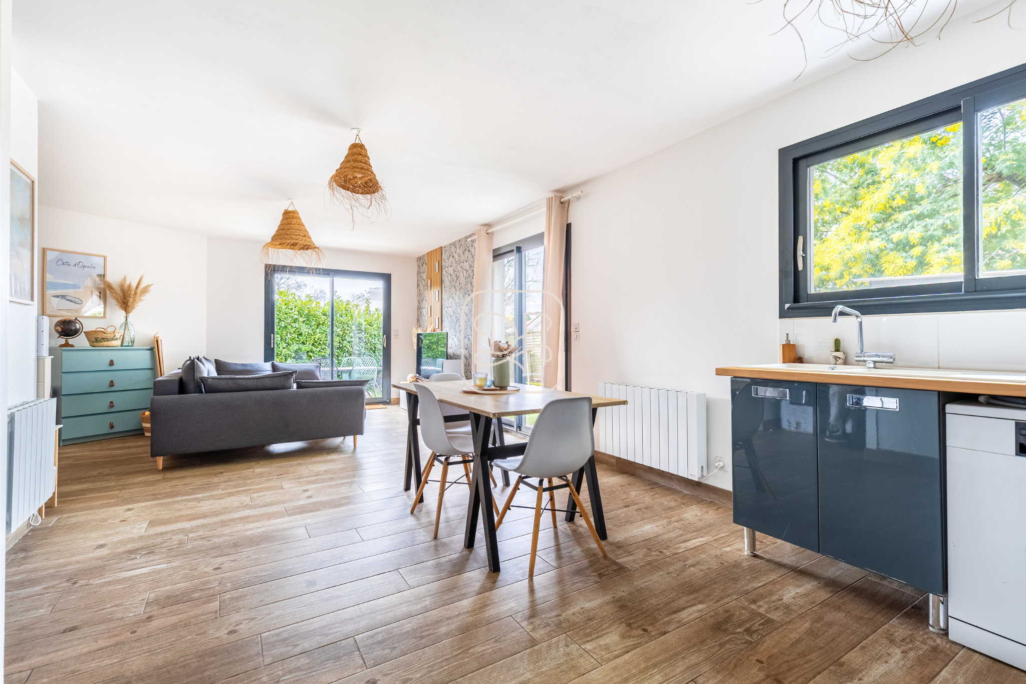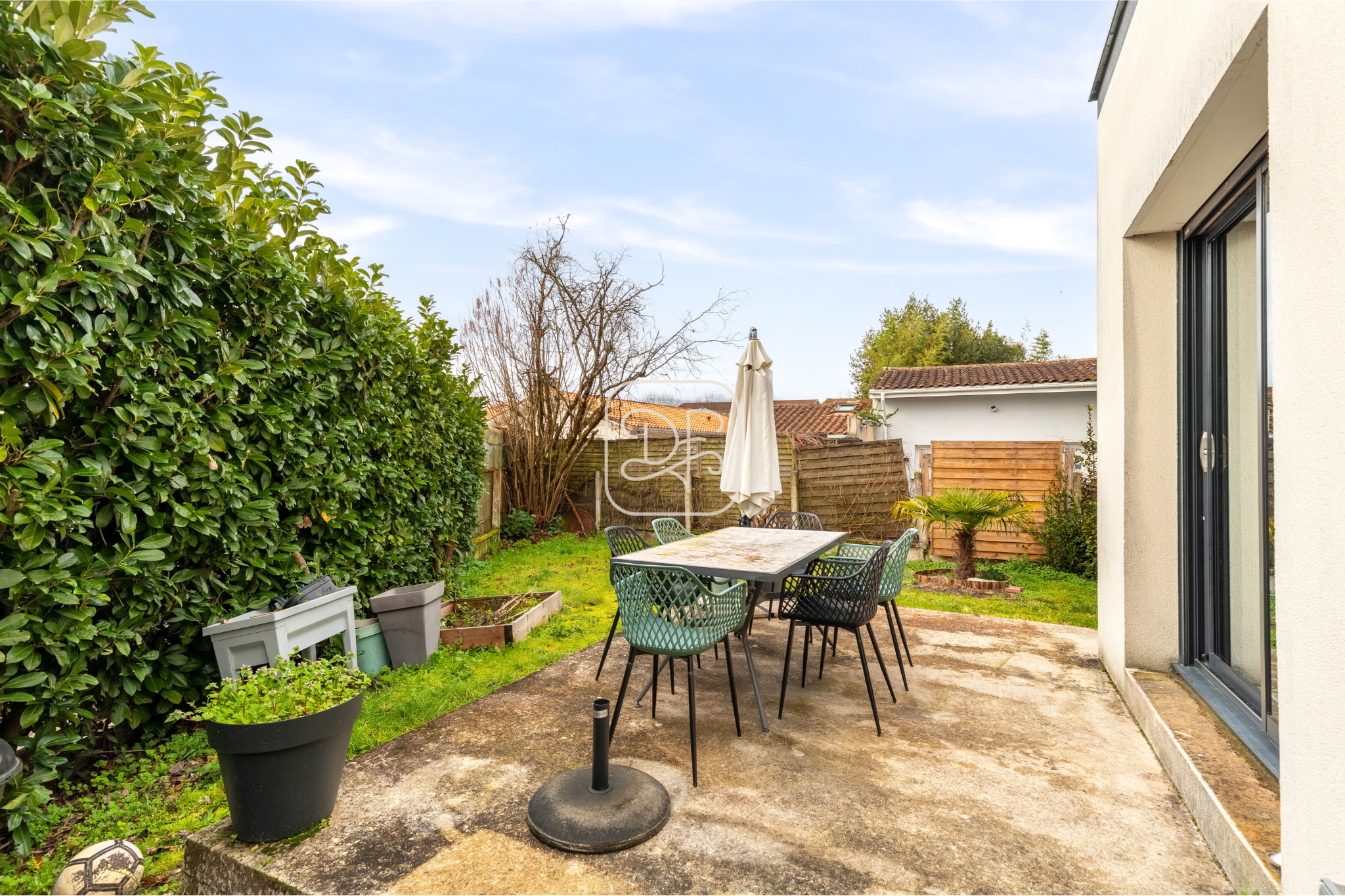 Le jardin privatif, agrémenté d’une terrasse, offre un cadre idéal pour vos repas en plein air, vos moments de détente ou vos activités de jardinage.